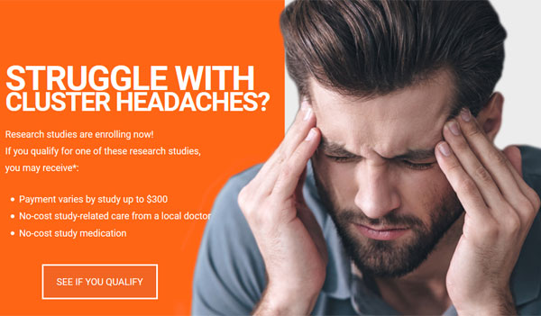 Unlike migraine headaches where rest in a dark room may help until the headache stops, those who suffer with the severe pain of Cluster Headaches find no relief from lying down. They may be restless and pace while enduring the painful attack.