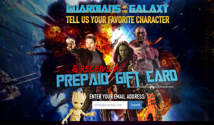 Users can signup for this easy one page email submit receive a prepaid gift card for telling us your favorite Guardians of the Galaxy character.
