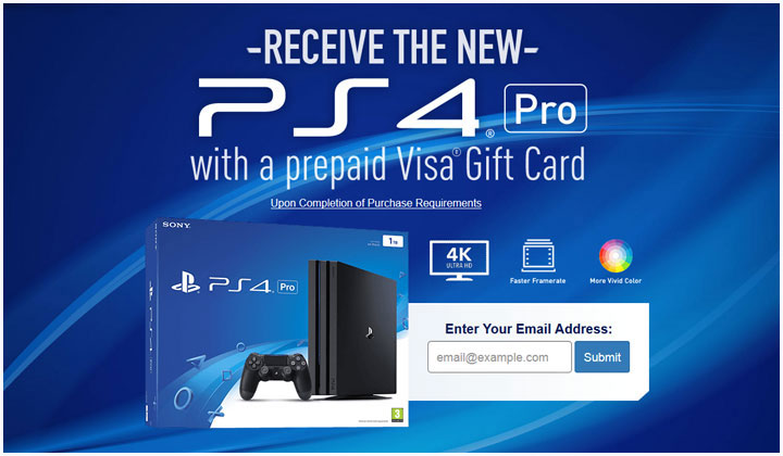 Users can signup for this email submit to answer surveys and receive a new PS4 Pro with a VISA gift card.