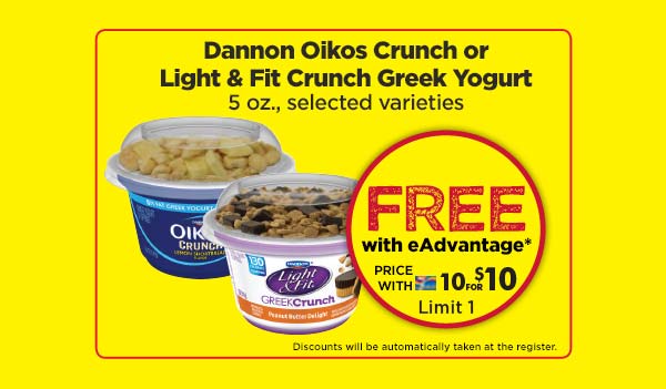 Load a coupon for a Free Dannon Oikos Crunch Yogurt at Giant Eagle to your Advantage card. No purchase required.