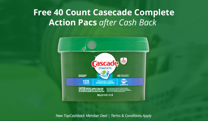 Get a Free 40-count Cascade Complete Action Pacs from Walmart after cash back! Valid 7/11 – 7/25. New members only.