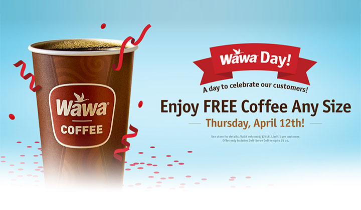 In celebration of 54 years of incredible associates score Free Wawa coffee any size on Thursday, April 12th. Visit any of the participating WAWA Coffee locations to get your Free coffee.